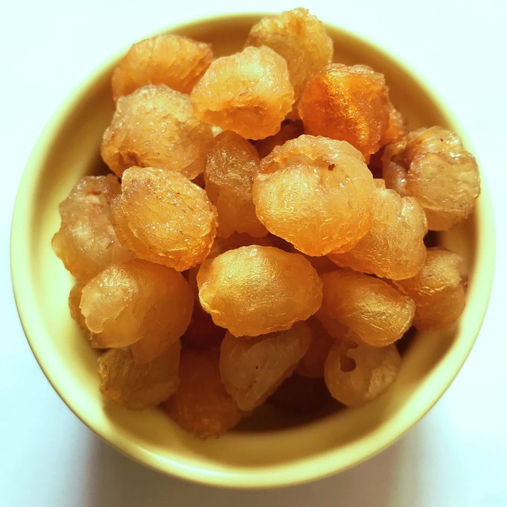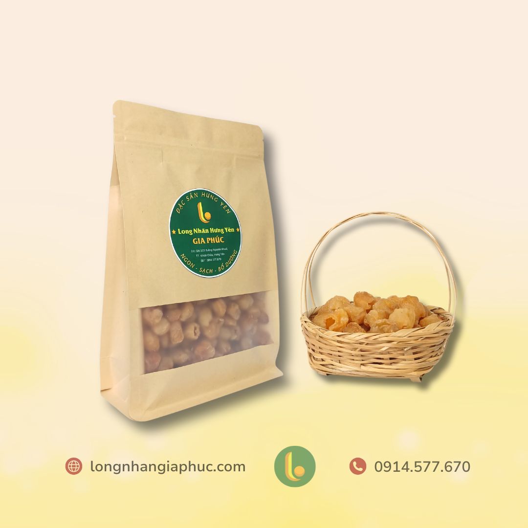 Long nhãn (hay còn gọi là nhãn nhục) được chế biến từ giống nhãn đặc sản Hưng Yên. Với quy trình sản xuất khép kín, đảm bảo vệ sinh an toàn thực phẩm, long nhãn Gia Phúc giữ trọn vị ngọt tự nhiên, dẻo mềm và giàu dưỡng chất. Sản phẩm không chỉ là nguyên liệu lý tưởng cho các món chè, trà thảo mộc hay món ăn bổ dưỡng, mà còn mang lại nhiều lợi ích cho sức khỏe, giúp an thần, bồi bổ cơ thể.